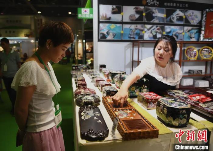 在浙江杭州舉行的第二屆中國國際茶葉博覽會(huì)上,一名參觀者被展出的韓國茶器吸引。王剛 攝