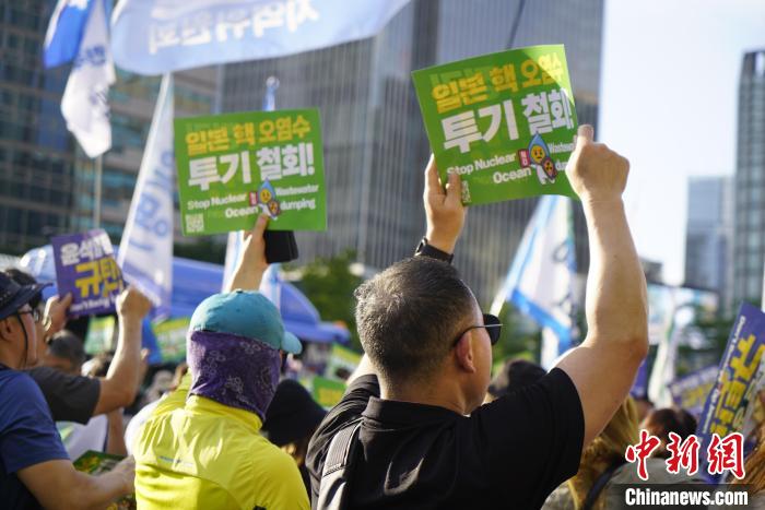 當(dāng)天下午,集會在首爾中區(qū)新聞中心前舉行。中新社記者在現(xiàn)場看到,大批民眾手舉寫有“停止日本排放核污染水行為!”“反對向海洋傾倒福島核污水!”等字樣的標(biāo)語,并高呼“立即停止向海洋傾倒核污染水!”“禁止進(jìn)口所有日本水產(chǎn)品!”等口號,要求日本停止向海洋傾倒福島核電站核污染水,并敦促韓國政府向國際海洋法法庭起訴日本。