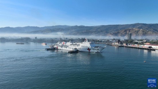 9月3日,中國(guó)海軍“和平方舟”號(hào)醫(yī)院船抵達(dá)東帝汶帝力港。新華社發(fā)(桂江波 攝)
