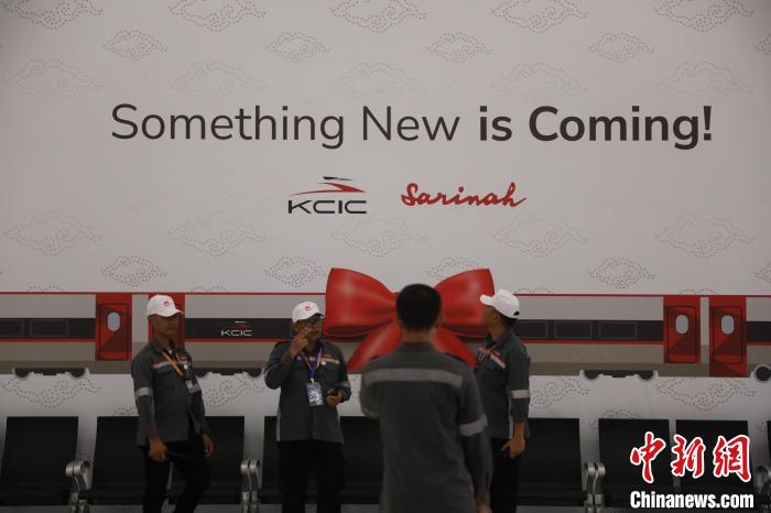 圖為工作人員從雅萬高鐵列車模型前走過。李志全攝