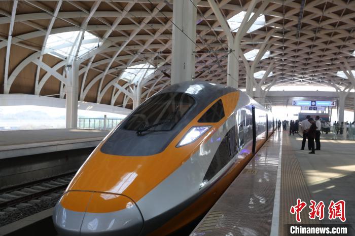 雅萬高鐵高速動車組是復興號的“孿生兄弟”,其依托時速350公里復興號中國標準動車組先進成熟技術,適應印尼當?shù)剡\行環(huán)境和線路條件,融合印尼本土文化,進行適應性改進,采用中國標準設計制造,最高運營時速350公里,具有技術先進、安全智能、環(huán)境適應力強、本土特色鮮明等特點。