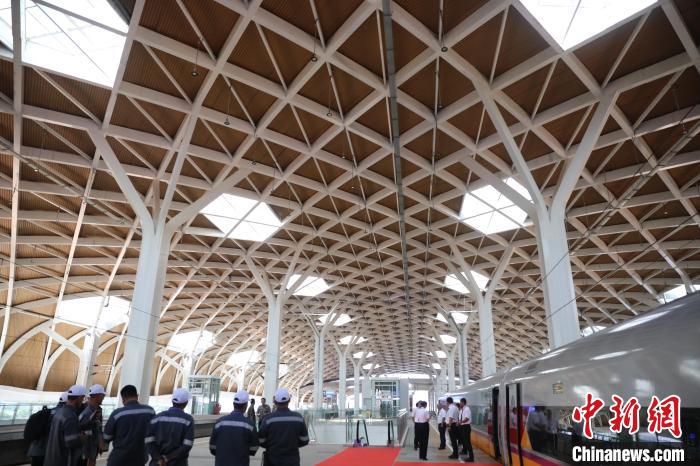 該站也是印尼首都第一站,站房建筑面積2.6萬平方米,可滿足最高2500人同時候車,高峰每小時發(fā)送量為5200人。車站屋面采用金屬面板,菱形造型,鋼結(jié)構(gòu)網(wǎng)架,出挑深遠。室內(nèi)設計采用印尼巴迪克傳統(tǒng)蠟染、中國紅等文化元素,中印尼文化巧妙融合、交相呼應。
