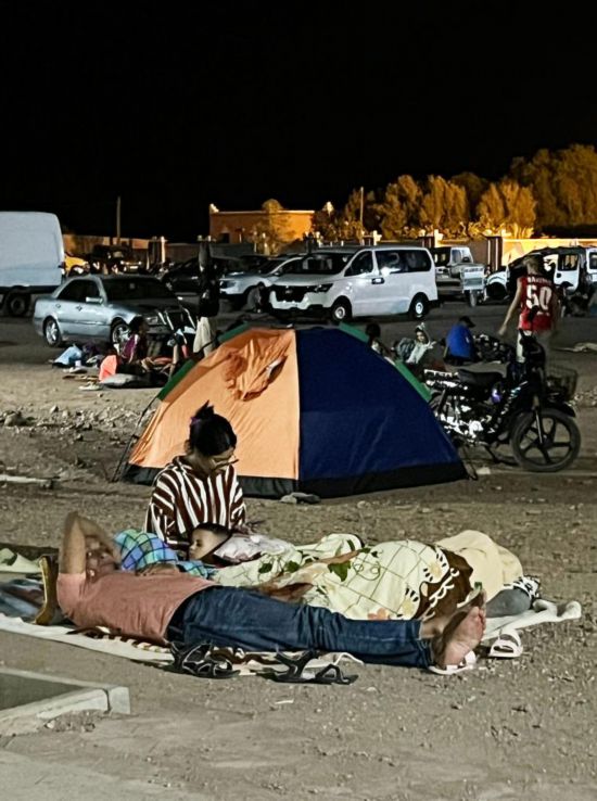 9月9日凌晨,在距離震中200多公里的摩洛哥瓦爾扎扎特市,居民來(lái)到戶外避險(xiǎn)(手機(jī)照片)。新華社記者 王東震 攝