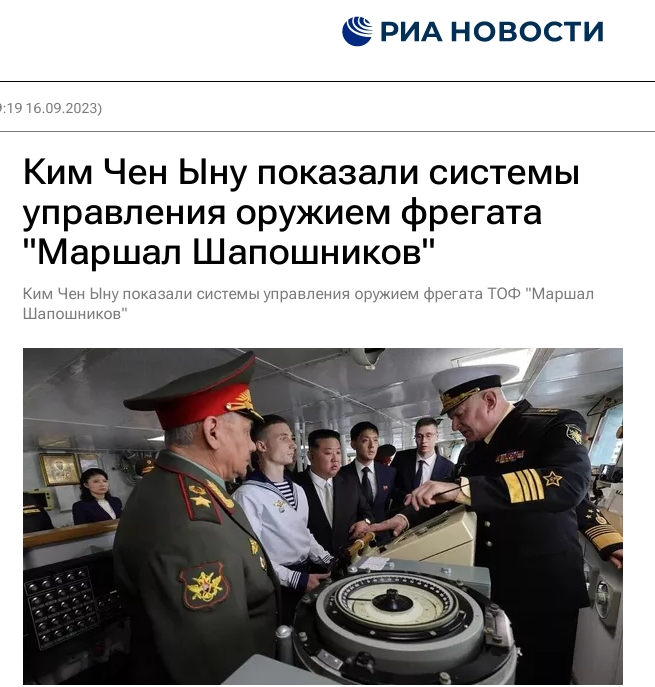 報(bào)道稱,參觀完“沙波什尼科夫元帥”號(hào)護(hù)衛(wèi)艦后,金正恩在護(hù)衛(wèi)艦的貴賓簿上留言,并獲贈(zèng)一個(gè)軍艦?zāi)P汀?/p>