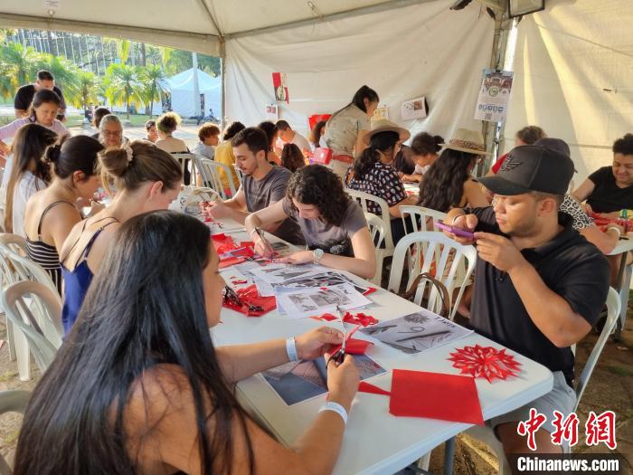 當(dāng)?shù)貢r(shí)間9月16日,坎皮納斯市民在當(dāng)?shù)仄咸蜒拦珗@體驗(yàn)中國剪紙、書法、制作燈籠等文化活動??财ぜ{斯大學(xué)孔院供圖