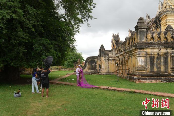 9月30日,緬甸曼德勒,一對(duì)新人在因瓦古城遺址拍攝婚紗照。 中新社記者 劉冉陽(yáng) 攝