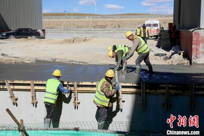 圖為西藏那曲物流園區(qū)綜合5站臺大修施工現(xiàn)場進(jìn)行混凝土澆筑作業(yè)。馬生明 攝