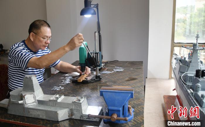 近40年的“造艦”生活,也讓潘雄體會到許多不易和堅(jiān)守。“做模型的技術(shù)對于建筑出身的我來說不是難題,對艦船的愛好和制作模型的耐心才是最重要的?!迸诵鄯Q,自己剛開始制作“昆明號”驅(qū)逐艦時并無多少資料可查,每天下班吃完飯后就在工作臺上研究艦炮、桅桿、艦島的整合安裝和細(xì)節(jié)對接,經(jīng)常做著做著就到了凌晨。
