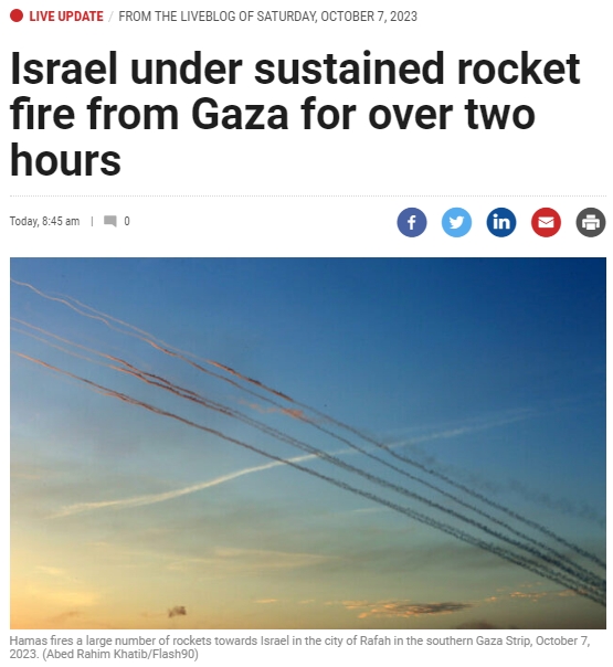 報道稱,巴勒斯坦伊斯蘭抵抗運動(哈馬斯)隨后發(fā)布聲明稱,他們在20分鐘內(nèi)向以色列方向發(fā)射了超過5000枚火箭彈。