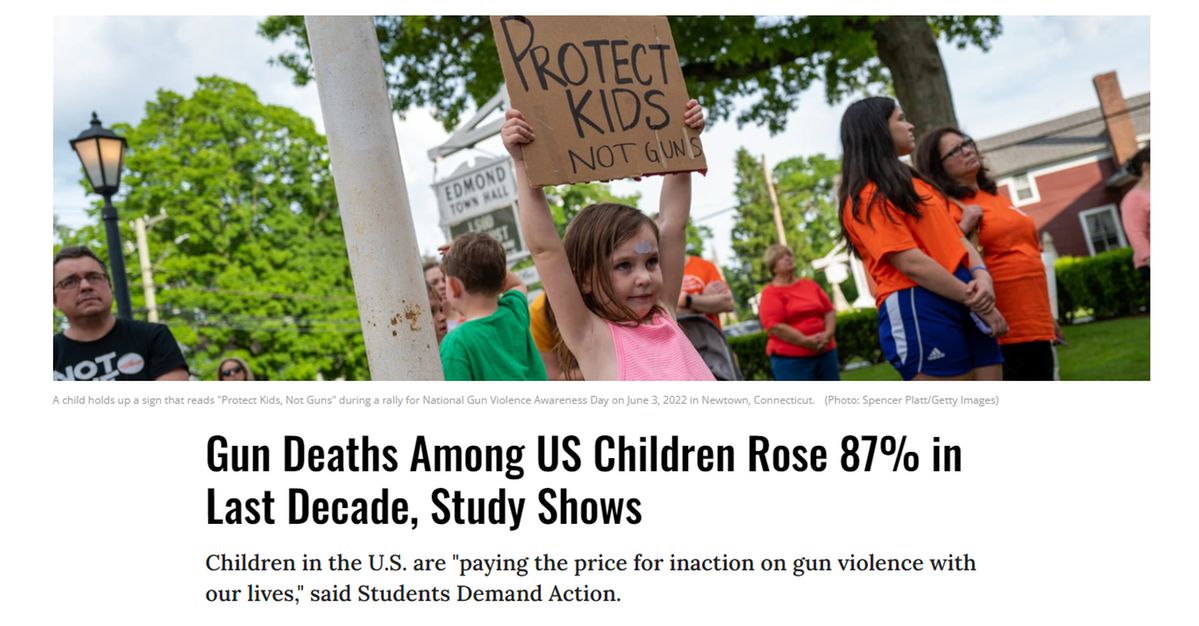 【世界說(shuō)】美國(guó)兒童槍支死亡率上升87% 美媒:孩子們“正在為政府的不作為付出代價(jià)”