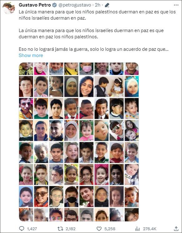 10月8日,佩特羅還發(fā)布了一張據(jù)稱(chēng)是遭以色列殺害的巴勒斯坦少年兒童的照片。