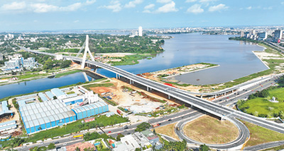 近年來(lái),中國(guó)企業(yè)為提升非洲基礎(chǔ)設(shè)施水平、加速互聯(lián)互通和一體化進(jìn)程、促進(jìn)當(dāng)?shù)亟?jīng)濟(jì)社會(huì)發(fā)展和民生改善等作出了積極貢獻(xiàn)。圖為中國(guó)路橋工程有限責(zé)任公司承建的科特迪瓦阿比讓科科迪斜拉橋項(xiàng)目。