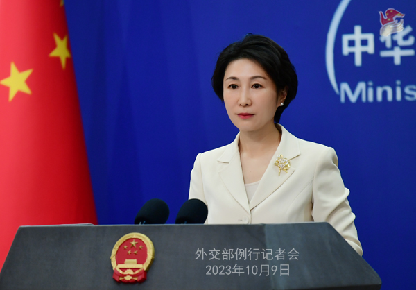 中新網(wǎng)北京10月9日電 (李京澤 謝雁冰)中國(guó)外交部發(fā)言人毛寧9日主持例行記者會(huì)。