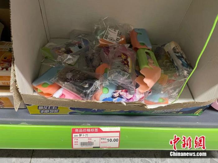 一些地區(qū)的市場監(jiān)管局也針對“三無”蘿卜刀開始采取行動。比如,重慶市璧山區(qū)市場監(jiān)管局對“蘿卜刀”等兒童用品開展專項整治行動。檢查發(fā)現有的1戶商家在宣傳“蘿卜刀”時使用“殺掉你”、“擦擦擦鯊掉”等誘導不當行為的文字,已現場責令商戶整改。