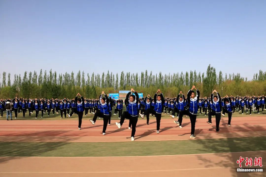 敦煌中學(xué)學(xué)生在操場做敦煌舞課間操。張曉亮 攝