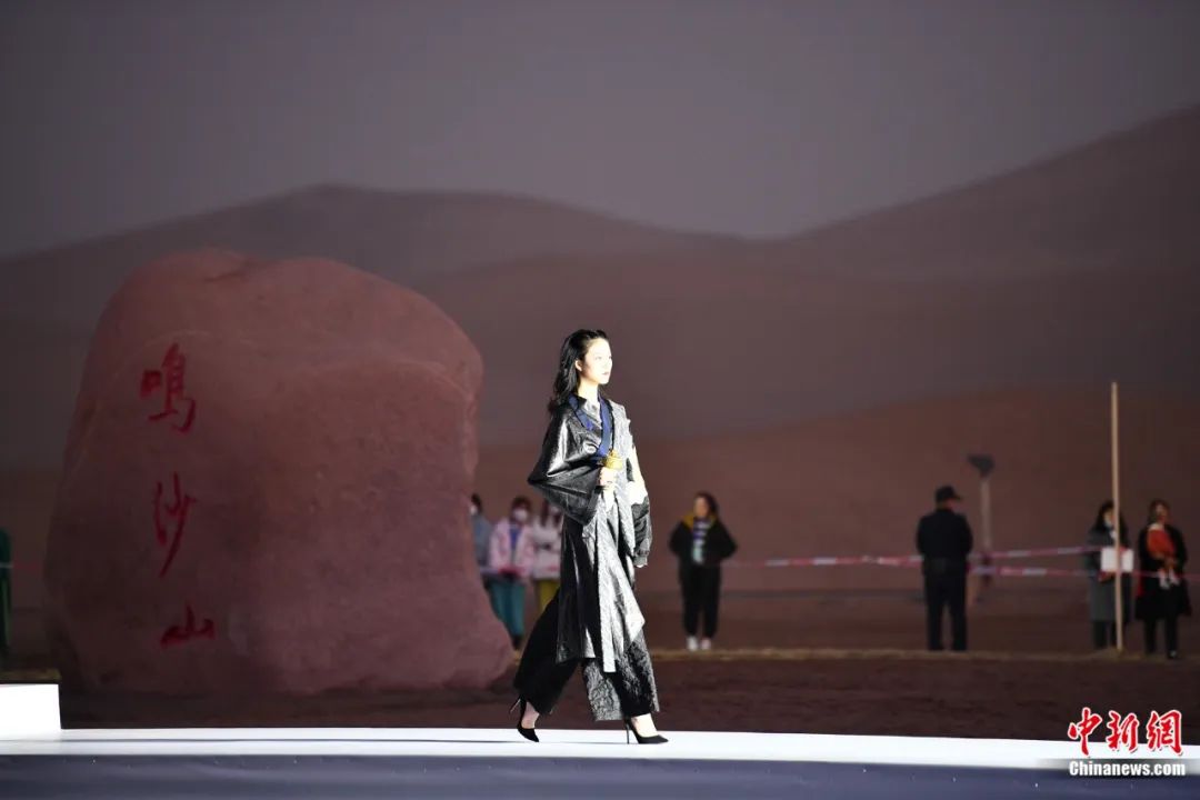 敦煌鳴沙山下舉行服裝秀。中新社記者 殷春永 攝