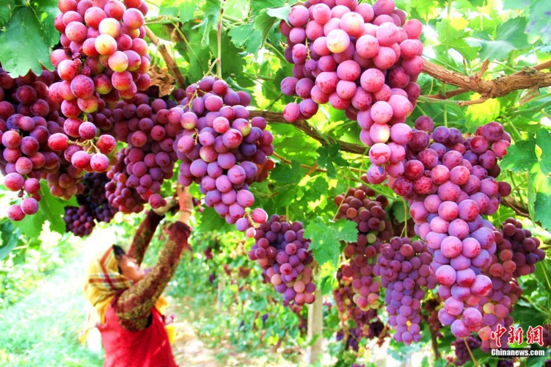 敦煌市莫高鎮(zhèn)農(nóng)民在葡萄園采摘葡萄。張曉亮 攝