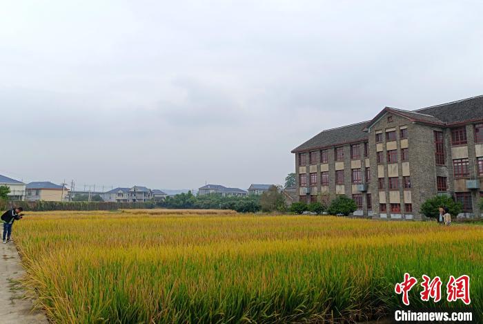10月13日,安江農(nóng)校紀念園內(nèi),袁隆平曾發(fā)現(xiàn)水稻“天然雄性不育株”的試驗田里,金黃的稻穗隨風搖曳。這里如今仍是科研人員開展雜交水稻研究的“陣地”。中新社記者 鄧霞 攝