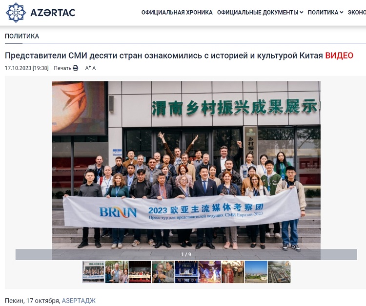 阿塞拜疆國家通訊社報道2023“一帶一路”媒體合作論壇歐亞主流媒體考察團走進陜西