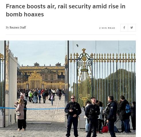 當(dāng)?shù)貢r間19日,法國14個機場收到炸彈威脅,至少9個機場進行疏散。凡爾賽宮也在不到一周的時間內(nèi)第4次進行疏散。