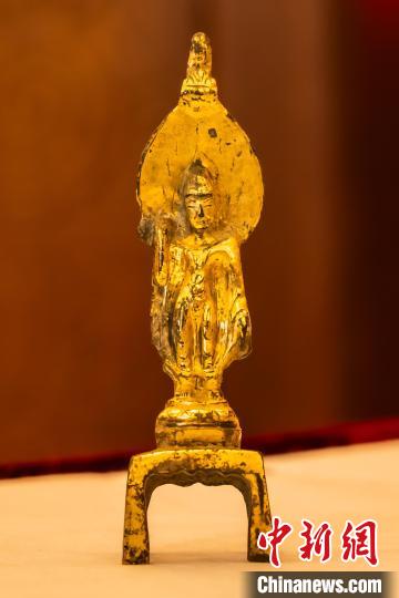 中國駐澳大利亞大使館舉行儀式,接收澳方向我國返還共4件流失文物藝術(shù)品與1件古生物化石。圖為隋晚期至唐銅鎏金佛立像。 國家文物局供圖
