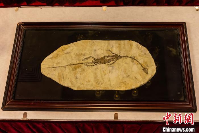 中國駐澳大利亞大使館舉行儀式,接收澳方向我國返還共4件流失文物藝術(shù)品與1件古生物化石。圖為晚侏羅世至早白堊世潛龍化石。 國家文物局供圖