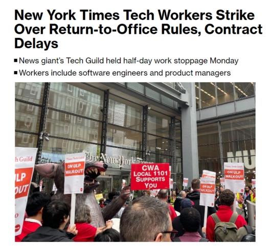 據(jù)了解,《紐約時報》的員工們與其管理層的合同談判已持續(xù)了15個月,他們指責管理層一直在拖延談判進程,并試圖限制他們在家辦公的能力。