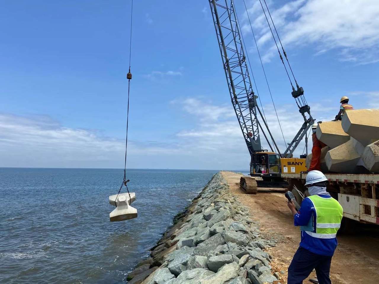 卡約新港口項(xiàng)目位于安哥拉卡賓達(dá)省,由中國(guó)進(jìn)出口銀行提供買(mǎi)方信貸資金,由中國(guó)路橋工程有限責(zé)任公司以EPC總承包方式實(shí)施。項(xiàng)目包括新建深水港口工程、港口設(shè)備的采購(gòu),以及與港口港區(qū)配套的自貿(mào)區(qū)及相關(guān)設(shè)施建設(shè)。港口工程的主要部分是在近岸水域新建一個(gè)離岸式700米長(zhǎng)的集裝箱和散雜貨碼頭,背后形成吹填堆場(chǎng),還包括引堤、引橋和陸域設(shè)施,形成了一個(gè)功能齊全的大型深水港口,設(shè)計(jì)年吞吐量達(dá)580萬(wàn)噸。王棟表示,卡約新港口項(xiàng)目已完成超過(guò)40%的工程,預(yù)計(jì)將于2025年年底竣工。這個(gè)項(xiàng)目不僅代表著中國(guó)企業(yè)的高水平工程實(shí)施,還體現(xiàn)了中安兩國(guó)在“一帶一路”框架下的密切合作。