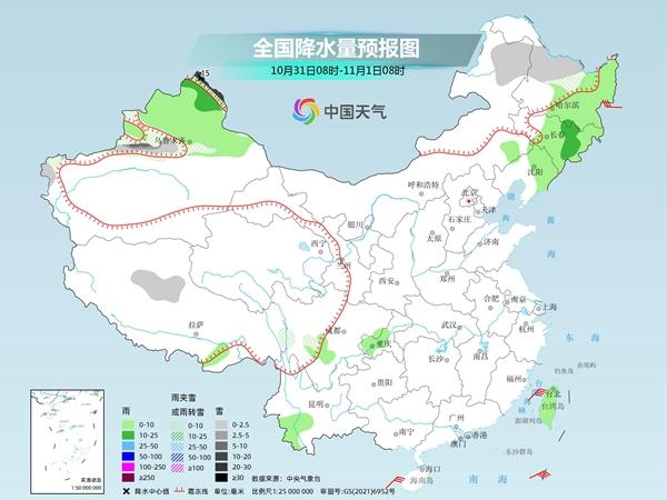 10月31日,江南北部降雨將結(jié)束,而廣東、廣西雨勢(shì)將增強(qiáng)。預(yù)計(jì)西藏東部、川西高原中部等地的部分地區(qū)有小雪或雨夾雪;貴州西南部、云南東南部、廣東西部、廣西等地有中雨,其中,云南東南部、廣西東南部、廣東西南部等地的部分地區(qū)有大雨。