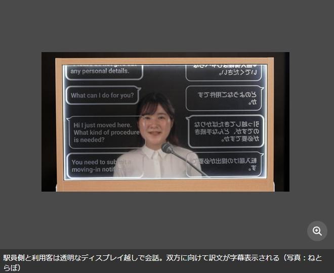 該顯示屏被設(shè)置在西武新宿站正面入口特快售處的“外國乘客咨詢臺”附近,使用時(shí)間是從7時(shí)至20時(shí)。車站工作人員和乘客可以通過透明顯示屏顯示出的翻譯內(nèi)容進(jìn)行對話。