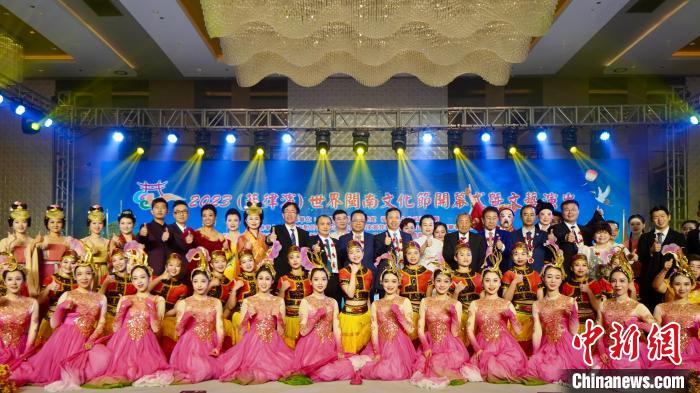 11月3日,2023世界閩南文化節(jié)在菲律賓馬尼拉舉行開幕式。圖為與會嘉賓與演員合影。中國駐菲使館供圖