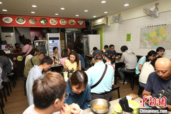 11月5日,臺(tái)北萬華區(qū)的柳州螺螄粉店,顧客絡(luò)繹不絕。 中新社記者 陳小愿 攝