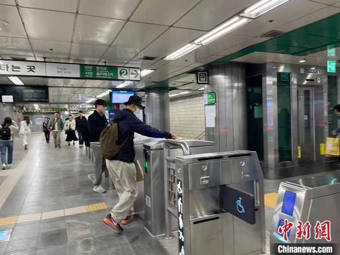 當(dāng)?shù)貢r(shí)間9日,市民在首爾地鐵新村站刷卡進(jìn)站。萬(wàn)佳欣 攝
