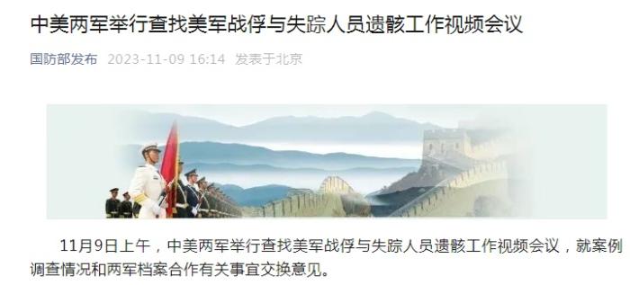 中新網(wǎng)11月9日電 據(jù)國(guó)防部發(fā)布微信公眾號(hào)消息,11月9日上午,中美兩軍舉行查找美軍戰(zhàn)俘與失蹤人員遺骸工作視頻會(huì)議,就案例調(diào)查情況和兩軍檔案合作有關(guān)事宜交換意見(jiàn)。