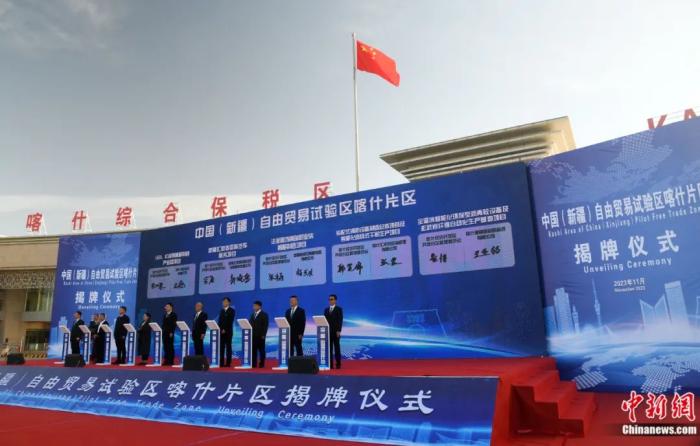 2023年11月11日,中國(guó)(新疆)自由貿(mào)易試驗(yàn)區(qū)喀什片區(qū)揭牌。孫亭文 攝