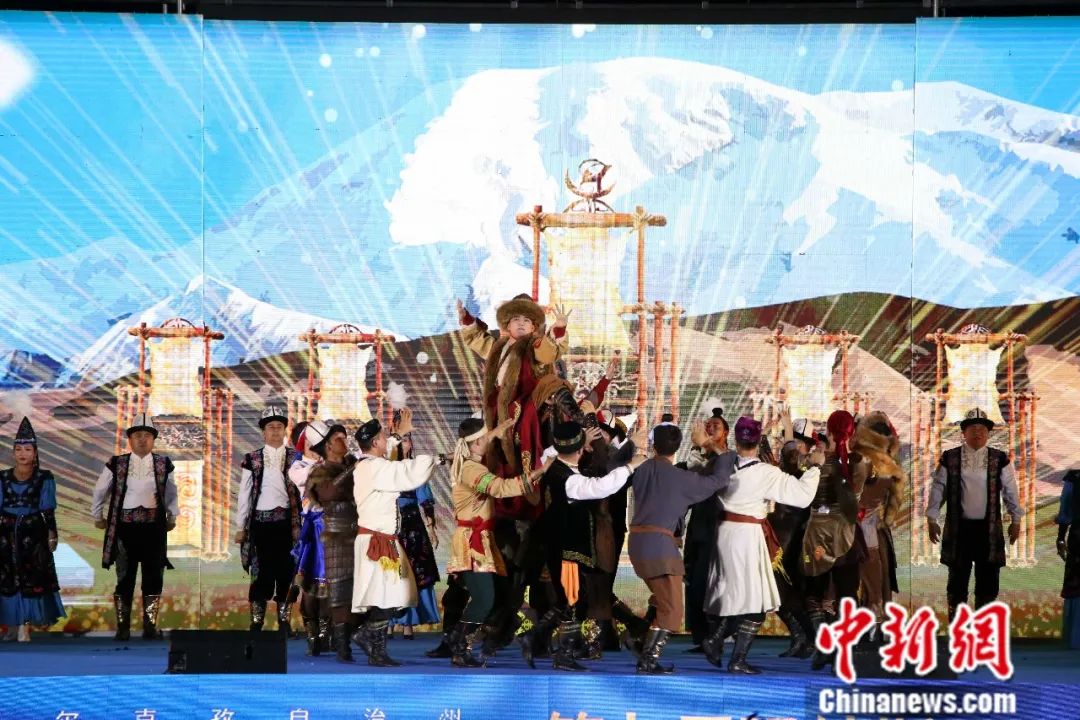 近年來(lái),根據(jù)《瑪納斯》改編的歌劇、舞劇、歌舞劇等先后向外界公演。圖為歌舞劇《瑪納斯》演出現(xiàn)場(chǎng)。茍繼鵬 攝
