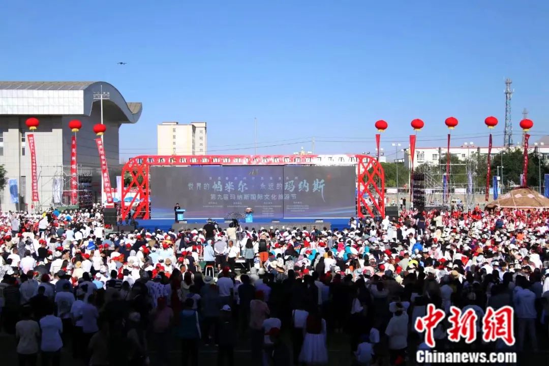 2023年7月中旬,第九屆瑪納斯國(guó)際文化旅游節(jié)在新疆克孜勒蘇柯?tīng)柨俗巫灾沃轂跚】h開(kāi)幕。圖為開(kāi)幕式現(xiàn)場(chǎng)。茍繼鵬 攝