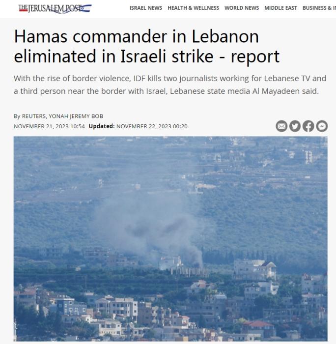 報(bào)道還稱,當(dāng)天早些時(shí)候,以軍對黎巴嫩的攻擊還導(dǎo)致兩名為黎巴嫩電視臺工作的記者以及在黎以邊境的一名工作人員身亡。