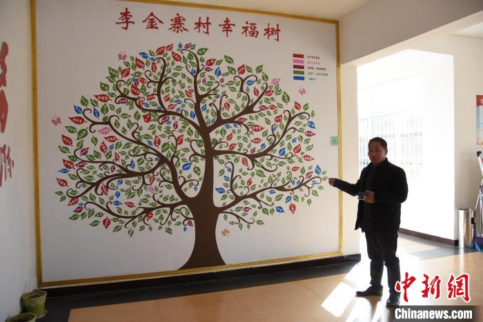 在李金寨村村委一面墻上,一棵高達3米的彩繪“幸福樹”引人注目。