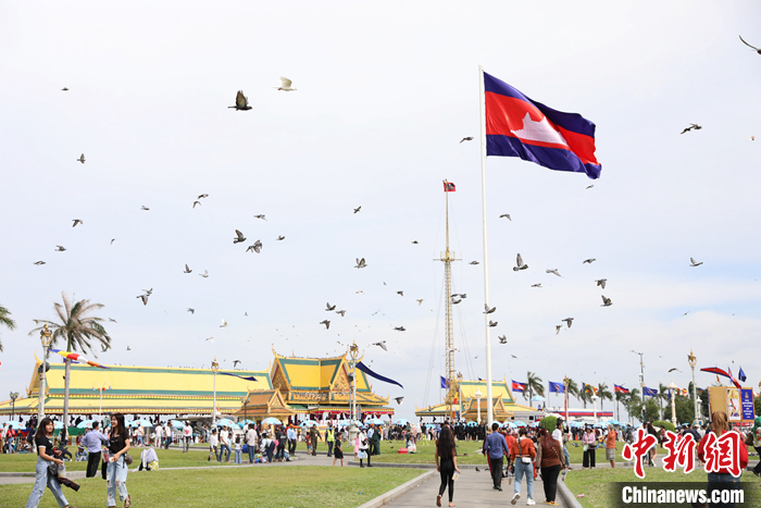 圖為送水節(jié)首日熱鬧非凡的金邊皇宮廣場(chǎng)。 中新社發(fā) 黎海月 攝