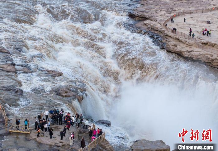 27日,“江山如畫”網(wǎng)上主題宣傳活動(dòng)(山西)采訪團(tuán)探訪壺口瀑布?! ∥淇〗? 攝
