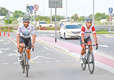 兩名騎行愛好者在“迪拜騎行”活動(dòng)中。