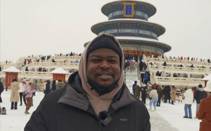 當(dāng)日正值大雪,銀裝素裹的天壇宛如一幅畫卷,古老的祈年殿在白雪的映襯下更顯莊重肅穆。留學(xué)生們沉浸在大雪紛飛的美景中,紛紛拿出手機(jī)互相打卡拍照,記錄下這美好瞬間。哈薩克斯坦籍留學(xué)生阿迪力(ARYSTAN ADIL)向記者介紹,這是他第一次來到天壇,“天壇是古代皇帝祭天祈雨的地方,我對(duì)中國(guó)的歷史很感興趣?!卑⒌狭φf。