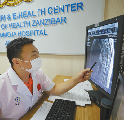 從第一臺(tái)X光機(jī)、CT設(shè)備,再到目前整個(gè)桑給巴爾地區(qū)唯一一臺(tái)核磁共振機(jī),納茲莫加醫(yī)院影像科的設(shè)備物資都來自中國捐贈(zèng)。不久前,影像科還增添了遠(yuǎn)程視頻設(shè)備。通過遠(yuǎn)程技術(shù),中國醫(yī)療隊(duì)可以對(duì)接中國國內(nèi)優(yōu)質(zhì)醫(yī)療資源,對(duì)當(dāng)?shù)貜?fù)雜病例進(jìn)行在線會(huì)診。桑給巴爾地區(qū)現(xiàn)有的5名影像科醫(yī)生,就是在一批批中國醫(yī)療隊(duì)隊(duì)員的帶教下成長起來的。
