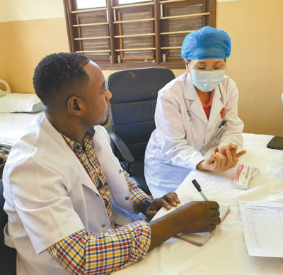 授人以魚,更要授人以漁。中國醫(yī)療隊(duì)在桑給巴爾組織多期線下多學(xué)科知識(shí)培訓(xùn)和技術(shù)帶教,“手把手”傳授先進(jìn)技術(shù),交流診療心得。醫(yī)療隊(duì)隊(duì)員除了分享專業(yè)知識(shí),介紹最新的醫(yī)學(xué)研究成果、診斷技術(shù)和治療方法,還帶著當(dāng)?shù)蒯t(yī)院的醫(yī)生到臨床參與實(shí)際診療,指導(dǎo)他們?nèi)绾螜z查患者、制訂治療計(jì)劃,以及與患者有效溝通。培訓(xùn)中,當(dāng)?shù)蒯t(yī)生常常被中國醫(yī)生的精湛技術(shù)和中醫(yī)文化的博大精深吸引。