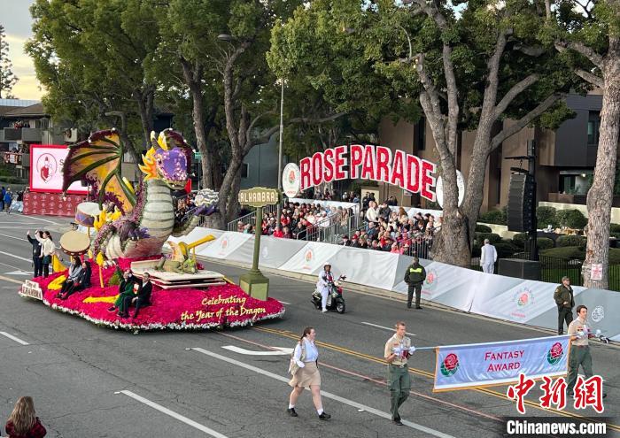 按照玫瑰花車游行的傳統(tǒng),花車由鮮花與枝葉等天然材料裝飾而成。2024年度“玫瑰皇后和玫瑰公主”花車、第110屆“玫瑰碗”橄欖球賽花車、關(guān)愛兒童和重視環(huán)保等主題花車各具匠心。值得一提的是,在中國傳統(tǒng)節(jié)日龍年春節(jié)即將到來之際,南加州華人聚居地阿罕布拉市帶來以“慶祝龍年”為主題的花車,用花朵融匯龍、音樂與愛等元素,憑借“奇幻與想象力方面的出色展現(xiàn)”榮獲花車設(shè)計(jì)“想象力獎(jiǎng)”。
