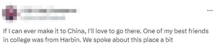 有網(wǎng)友表示,“如果我能去中國,我很想去那里。我大學(xué)時(shí)最好的一個(gè)朋友就是來自哈爾濱。我們聊過這個(gè)地方?!?/p>