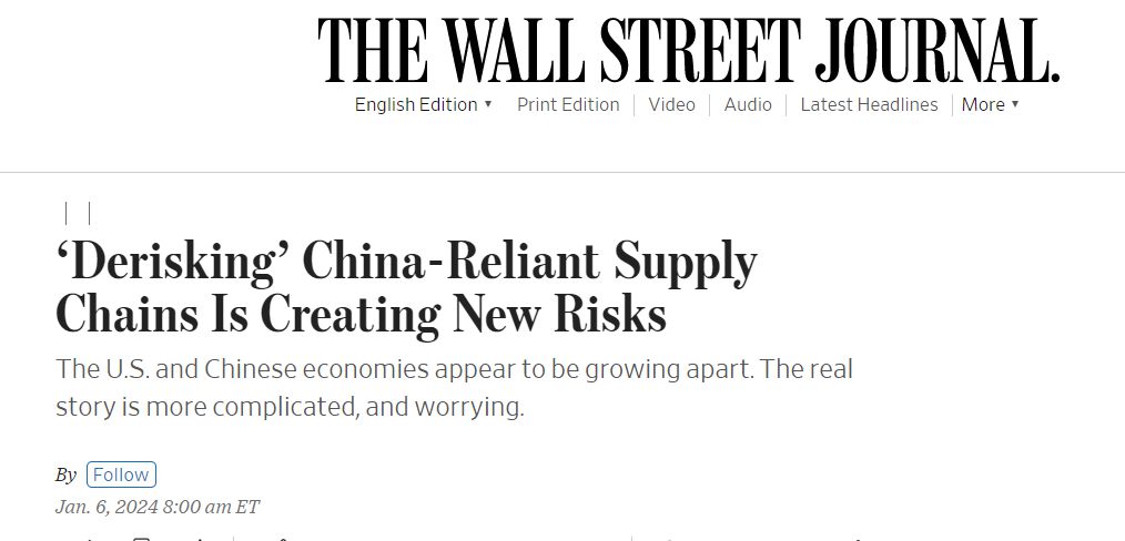 中國日報網(wǎng)1月8日電 美國《華爾街日報》網(wǎng)站報道稱,最新研究揭示了美西方針對中國供應鏈實施“去風險化”政策的實際效果。初步結(jié)論令人擔憂:旨在打造彈性供應鏈的相關(guān)措施,可能是虛幻的。結(jié)果將導致全球供應鏈變得更為復雜,反而會產(chǎn)生新的風險。