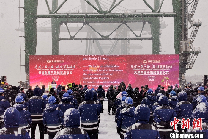 1月17日,天津車厘子快線首發(fā)儀式在天津港太平洋國際集裝箱碼頭舉行?!败嚴遄涌炀€”始發(fā)于智利圣安東尼奧港,直抵天津港。未來一周,還將有2艘次智利車厘子貨船抵達天津港,累計8300噸車厘子及其他南美洲產品從天津港上岸。 中新社記者 佟郁 攝