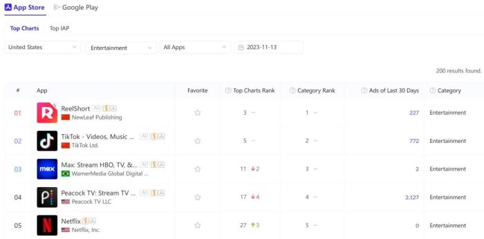 此外,據(jù)統(tǒng)計,2023年下半年,短劇類相關娛樂App的海外廣告投放量,也普遍出現(xiàn)了明顯增長。一時之間,對外短劇成功進軍歐美。
